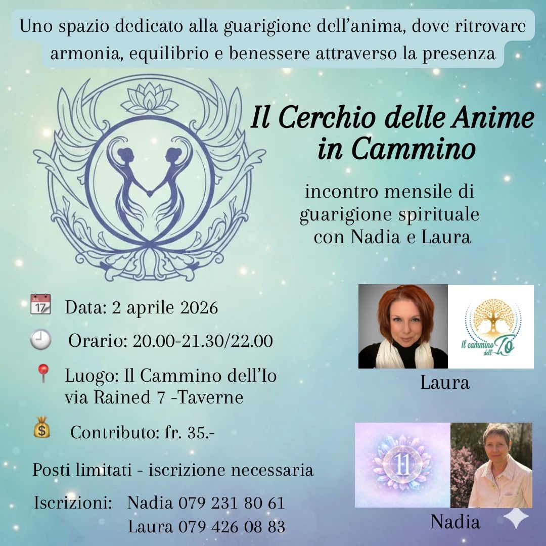 Dalla nostra amicizia, nutrita da un profondo e comune intento di Servizio verso il Mondo dello Spirito, nasce Il Cerchio delle Anime in Cammino, uno spazio mensile di guarigione spirituale, presenza e consapevolezza.