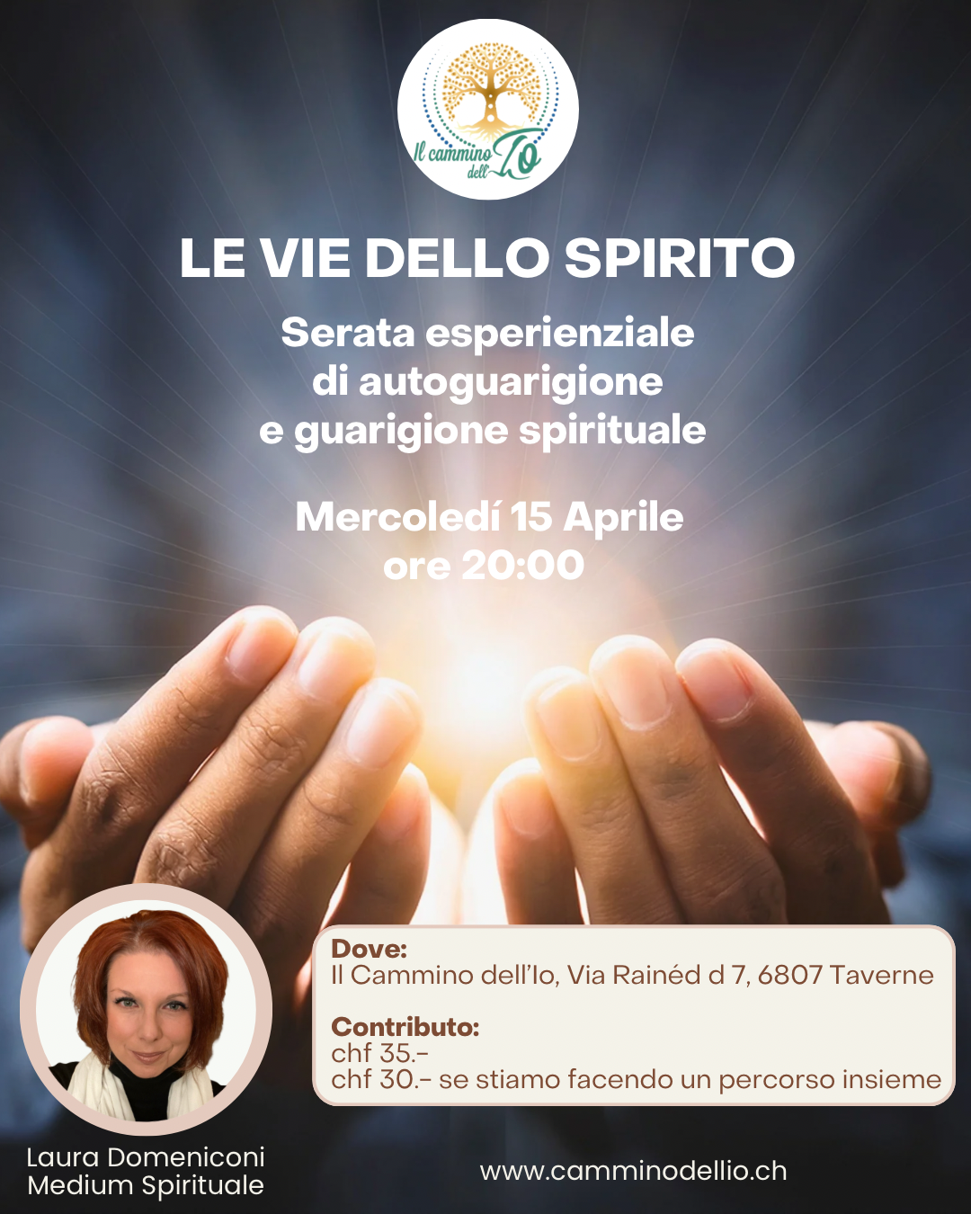 La serata esperienziale che ti propongo, ha lo scopo di guidarti lungo Le Vie dello Spirito, così che tu possa sentire profondamente la sua presenza ed avere strumenti concreti che ti permettano di autoguarirti e di essere tu stesso strumento di guarigione per gli altri.
